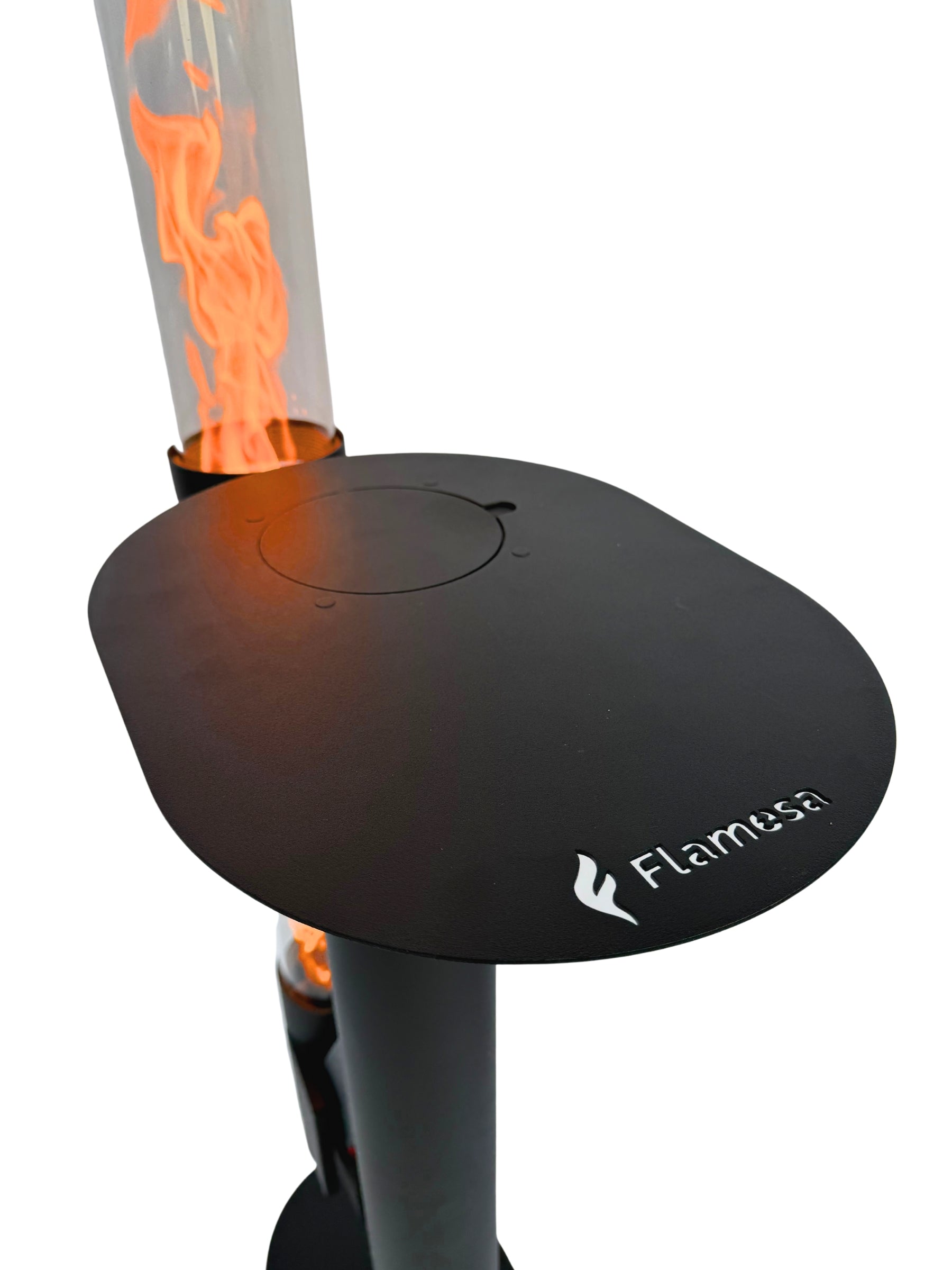 De Flamesa Lumina onderscheidt zich door zijn vaste, hittebestendige tafel. Ideaal voor glazen, kopjes of kleine accessoires. Hierdoor ontstaat een natuurlijke plek om samen te komen rond het vuur, zonder extra bijzettafels of losse elementen.